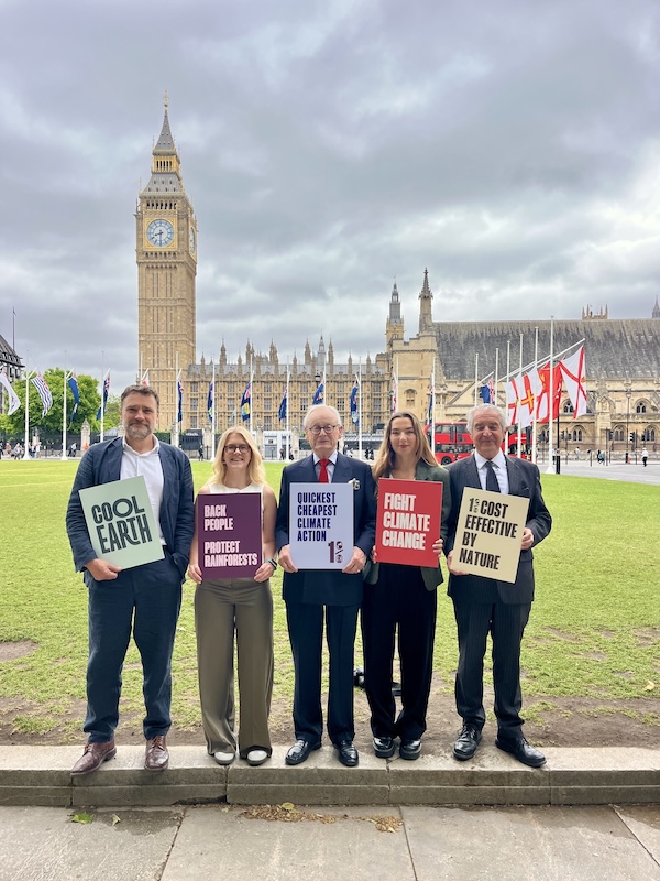 Lord Deben, Tony Juniper, Matthew Owen and Cool Earth in Westminster calling for 1% of climate finance to go to people who live in rainforests